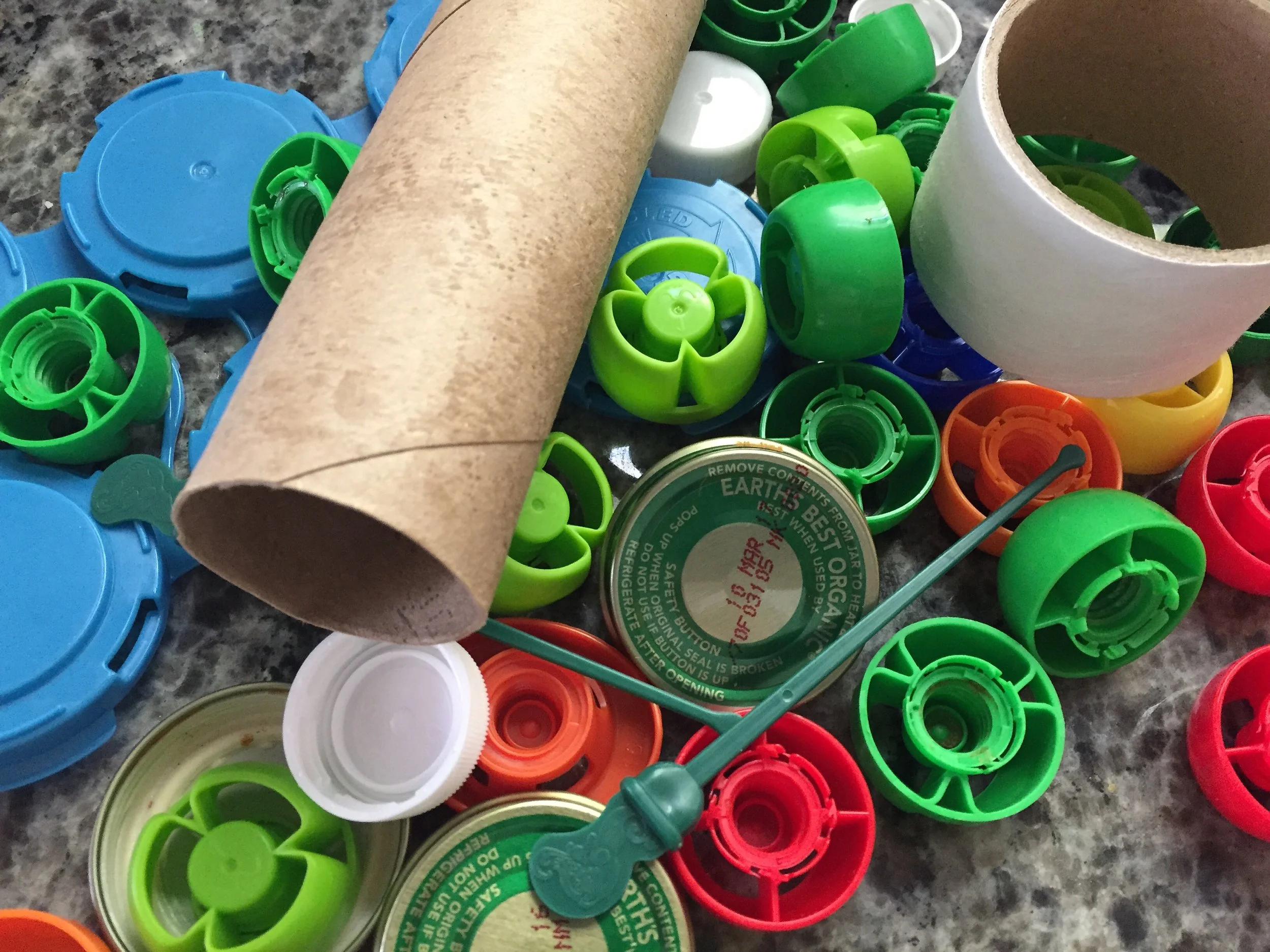 Owning an art studio, we've grown accustomed to saving everything. We save everything from paper scraps to wine corks to every box that makes its way into our house. Kids in our studio use toilet paper tubes just as fast as we can keep them in. Here are some of our favorite projects using recycled materials!