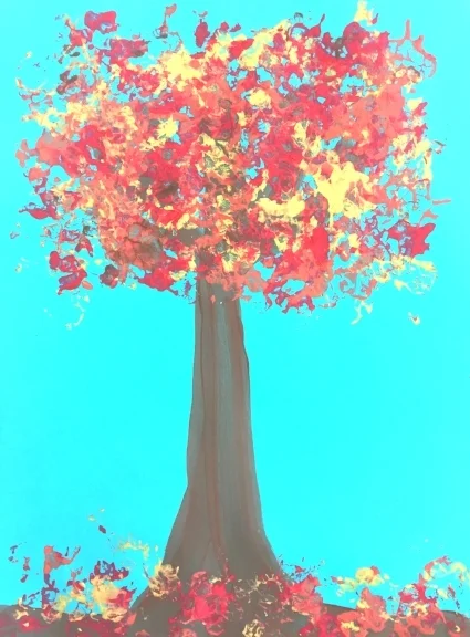 We're always looking for new things to paint with in the studio. Kids love experimenting painting with things other than paintbrushes, so we decided to give this a try. First step is to crinkle aluminum foil into a ball. Next, dip your foil into different colors of paint & roll it onto the paper to form the leaves. Finally, use your finger or paintbrush to paint a trunk in.